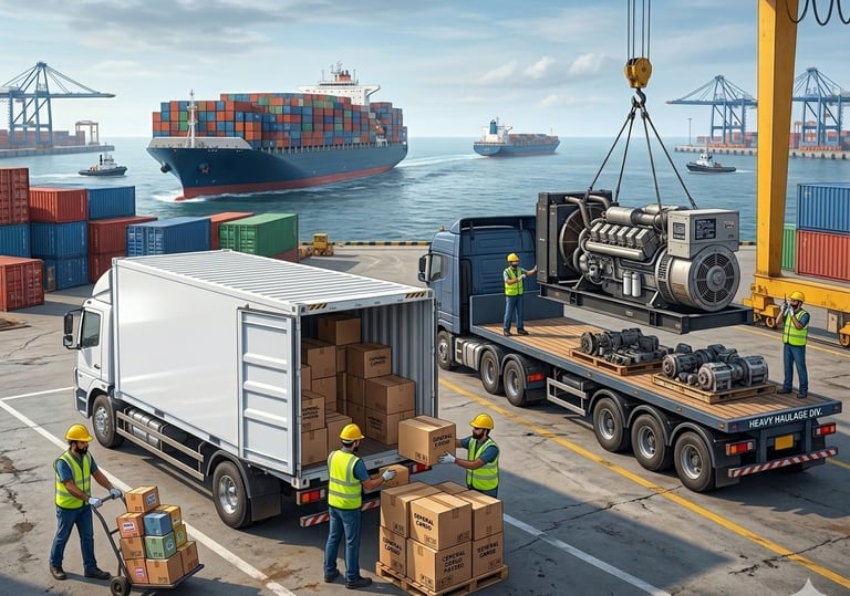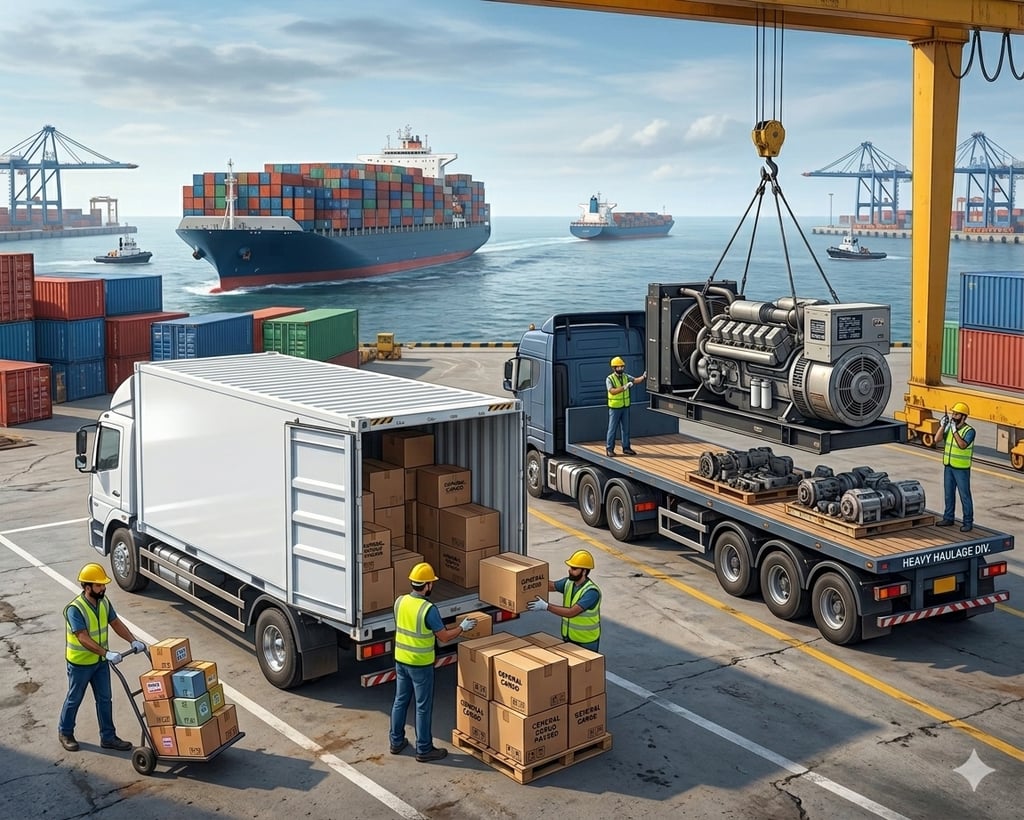 Open Body / Flatbed: Essential for industrial machinery (as seen in the port image), oversized generators, construction steel, large pipes, and heavy automotive components that require top-loading by crane.